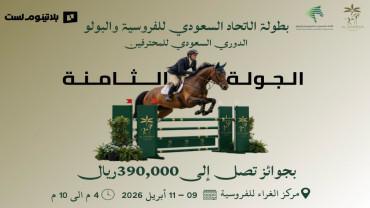 تقام اليوم الخميس، 9 أبريل 2026، منافسات بطولة الاتحاد السعودي للفروسية لقفز الحواجز في مدينة الرياض.