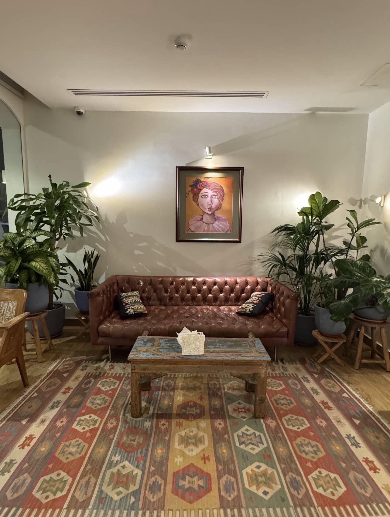 الجو داخله دافئ وعصري، مناسب للجلسات الهادئة، العمل على اللابتوب، أو الاسترخاء مع أصدقاء.